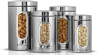 Simpli-Magic 4ピース ステンレススチールキャニスター 窓付き