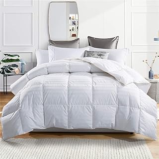 Puredown 掛け布団 グースダウン掛け布団 600フィルパワー カリフォルニアキングコットンシェル 500TC-ストライプ ホワイト キング/カリフォルニアキングサイズ