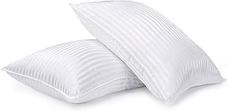 eLuxurySupply ベッド枕 - 高級人工羽毛枕 コットン100%のケーシングカバー付き - 仰向けと横向きで寝る方向けの中密度ロフト - 枕2個パック キングサイズ 20インチ x 36インチ