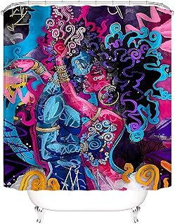 4点セット アフリカ系アメリカン キング&クイーン シャワーカーテンセット 滑り止めラグ トイレ蓋カバー バスマット 12フック付きシャワーカーテン 丈夫な防水シャワーカーテン