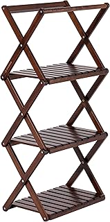 QIAOM シューズラック 下駄箱 木製 幅35cm/50cm/68cm 3段式 4段式 靴棚 靴箱 下足棚 オープンラック 玄関収納ラック 靴収納 収納ラック 本棚 キッチンラック 浴室用ラック フラワースタンド ウッドラック 小物置き 置物棚 ラック 棚 スリム 組立簡単 寝室 部屋 リビング ルーム (茶色 4段 35*25*100cm)