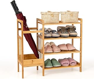 GIANTEX 竹製 シューズラック 収納ラック 靴収納 靴箱 4段 傘立て付き オープンラック 玄関収納 家庭用 収納 ラック シェルフ 置物棚 多機能
